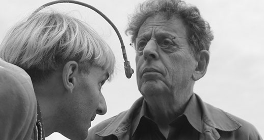 Neil Harbisson criando o retrato sonoro de Philip Glass.